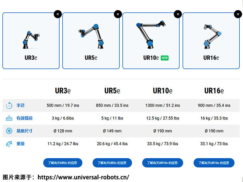 圖片來源于優(yōu)傲機(jī)器人官網(wǎng)機(jī)器人手臂截圖