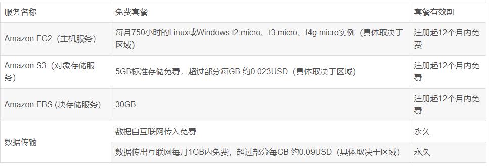 由于亞馬遜云科技服務(wù)種類較多,且計(jì)費(fèi)詳細(xì),很多用戶有些看不懂,所以對使用亞馬遜云望而卻步。其實(shí)亞馬遜云科技很多服務(wù)都有免費(fèi)套餐,以讓用戶體驗(yàn),這些服務(wù)的免費(fèi)套餐,搭建一個私人網(wǎng)盤綽綽有余。由于亞馬遜云海外區(qū)僅需個人信用卡就可以注冊,所以我們以海外區(qū)為例。我們可以從以下鏈接亞馬遜AWS海外區(qū)域賬戶免費(fèi)套餐_免費(fèi)云服務(wù)-AWS云服務(wù) 看到亞馬遜云哪些服務(wù)具備免費(fèi)套餐: