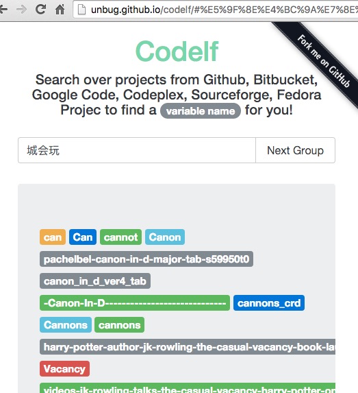Codelf通過搜索在線開源平臺Github, Bitbucket, Google Code, Codeplex, Sourceforge, Fedora Projec的項(xiàng)目源碼,幫開發(fā)者從中找出已有的匹配關(guān)鍵字的變量名。這個搜索服務(wù)支持直接搜索中文。codeif支持中文查詢,輸入中文意思,codeif可以根據(jù)需要查詢盡可能滿足需要的結(jié)果,并展示與查詢結(jié)果相關(guān)的支持各種編程語言的代碼片段以及代碼庫。